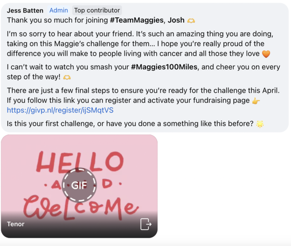 We love seeing conversations and often will ask questions to ensure people remain engaged. For AI, their MO is problem-solving so, unless asked, what they publish will just address one problem. It won’t look at the wider context, or spot the trends of multiple posts. One of our important roles is safeguarding. We look at the entirety of a supporter’s interaction. This means we’re better placed to include signposting to services when we spot something which is a cause for concern, something AI may well miss when responding in isolation.