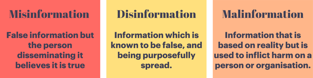 Malinformation – Information that is based on reality but is used to inflict harm on a person or organisation.