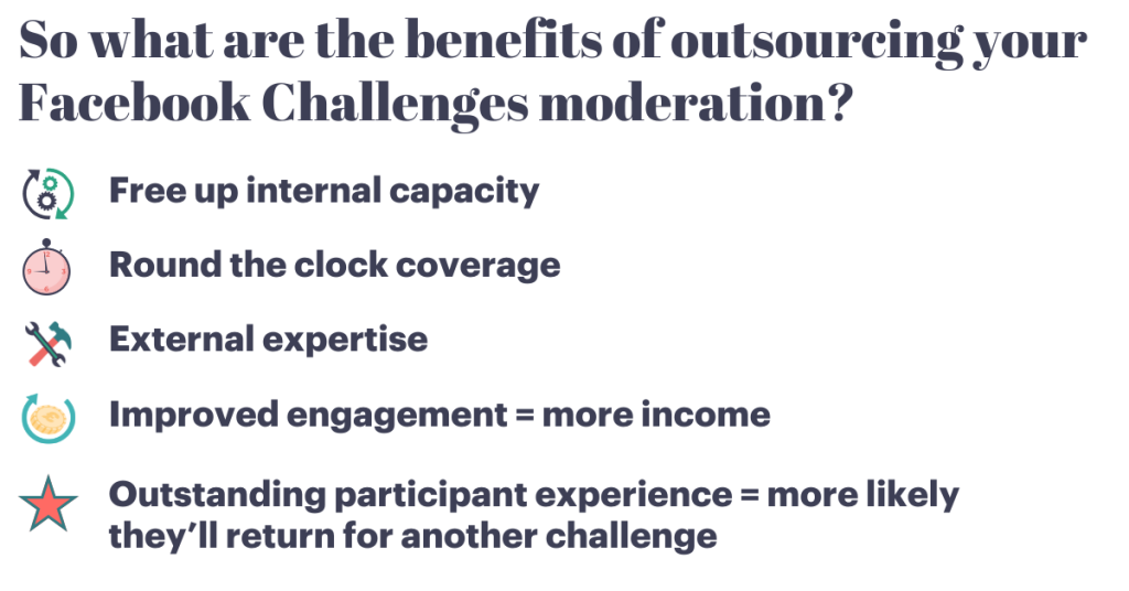 For our charity partners, outsourcing the moderation of their Facebook Challenge groups has proven to be a game-changer, allowing them to focus on what matters most while ensuring their challenges thrive.