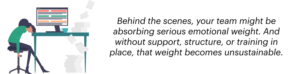 But behind the scenes, your team might be absorbing serious emotional weight. And without support, structure, or training in place, that weight becomes unsustainable.